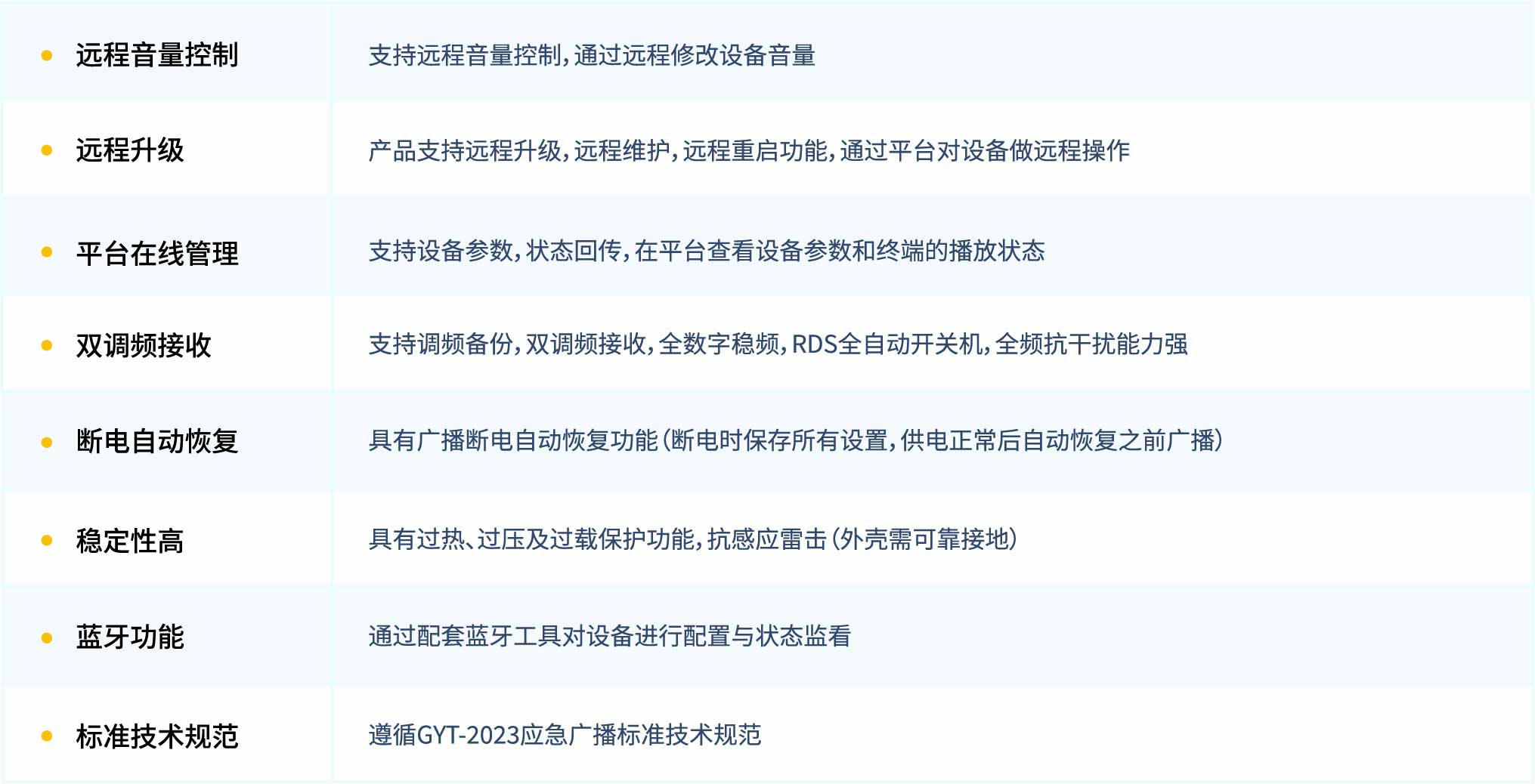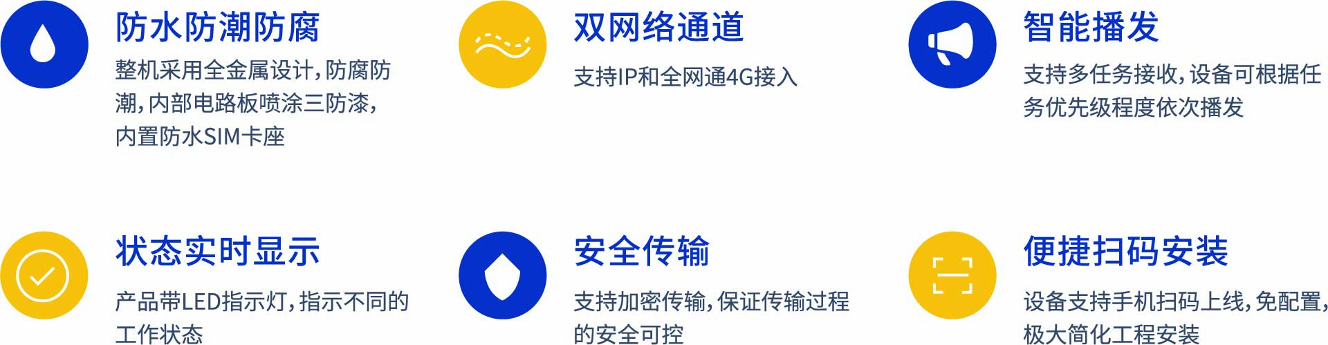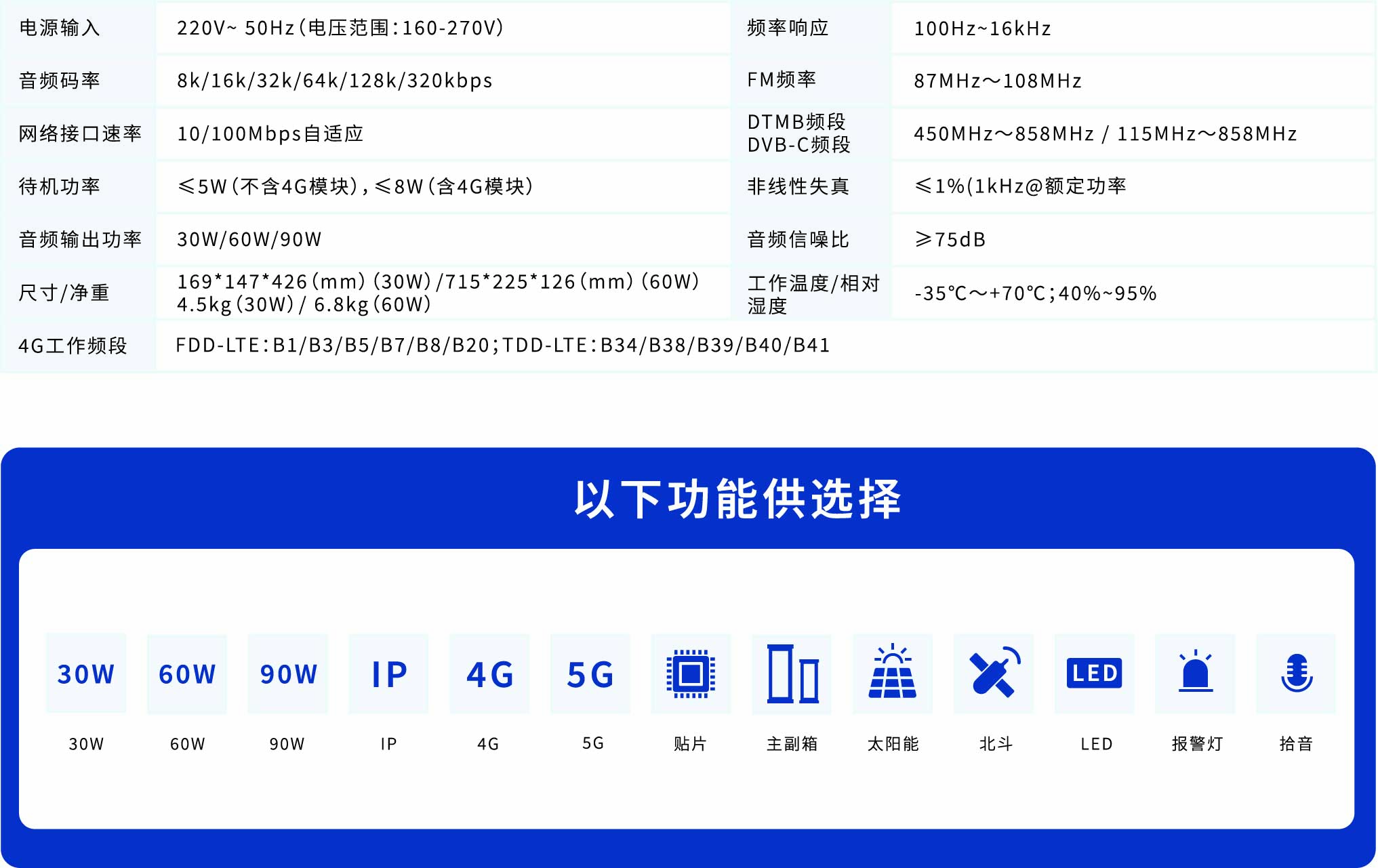 多模音柱是—款針對戶外廣播的智能終端產品,是應急廣播中實現覆蓋 “最后—公里 ”的重要產品,集音頻接收處理,放大于一體。主要是用在戶外的場合,在應急廣播、公共廣播、交通、教育等領域都有廣泛應用。產品支持IP、TS、 RDS和4G四種接收模式(可根據場景,選配模式),產品音頻部分采用高低音喇叭分頻設計輸出音質好,輸出功率可達 30W、60W或90W。