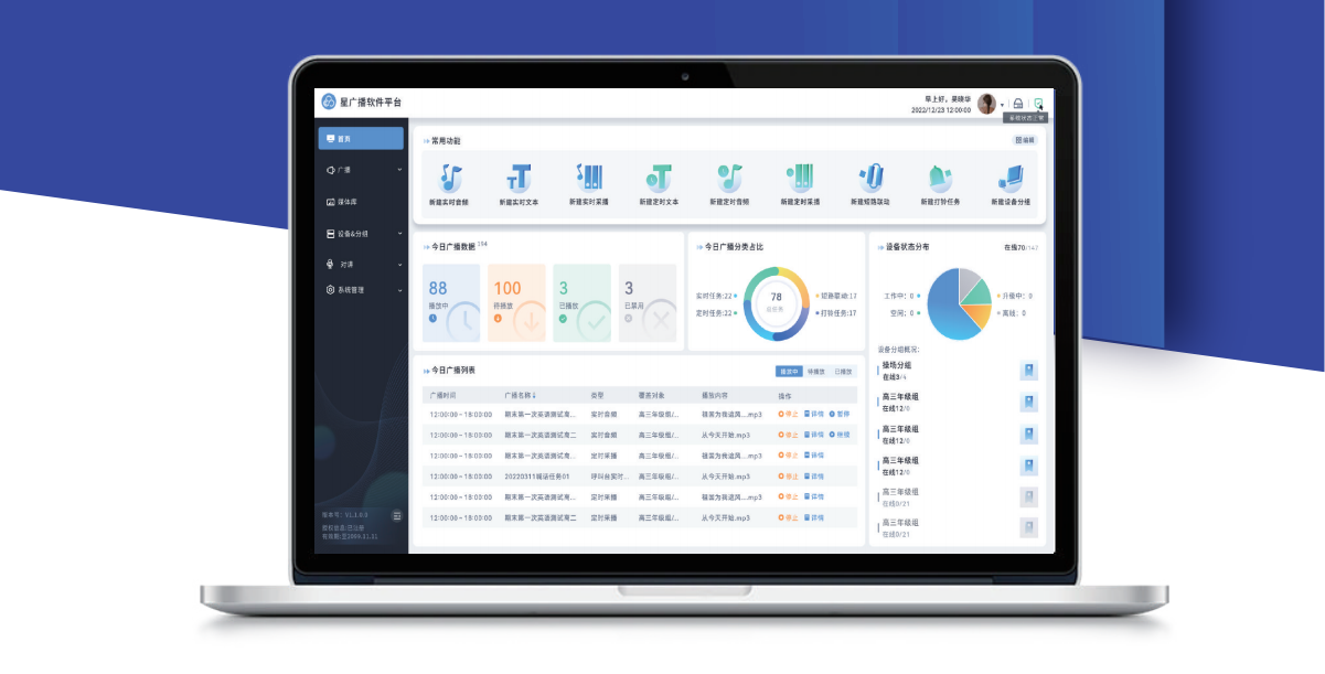 康通扎根教育行業(yè),深入業(yè)務(wù)場景,建設(shè)以教學(xué)場景為核心,將物聯(lián)網(wǎng)、音視頻、云平臺等先進技術(shù)與教育場景深度融合,打造適用于新型現(xiàn)代校園的廣播系統(tǒng),實現(xiàn)校園廣播業(yè)務(wù)處理的智能化和一體化。