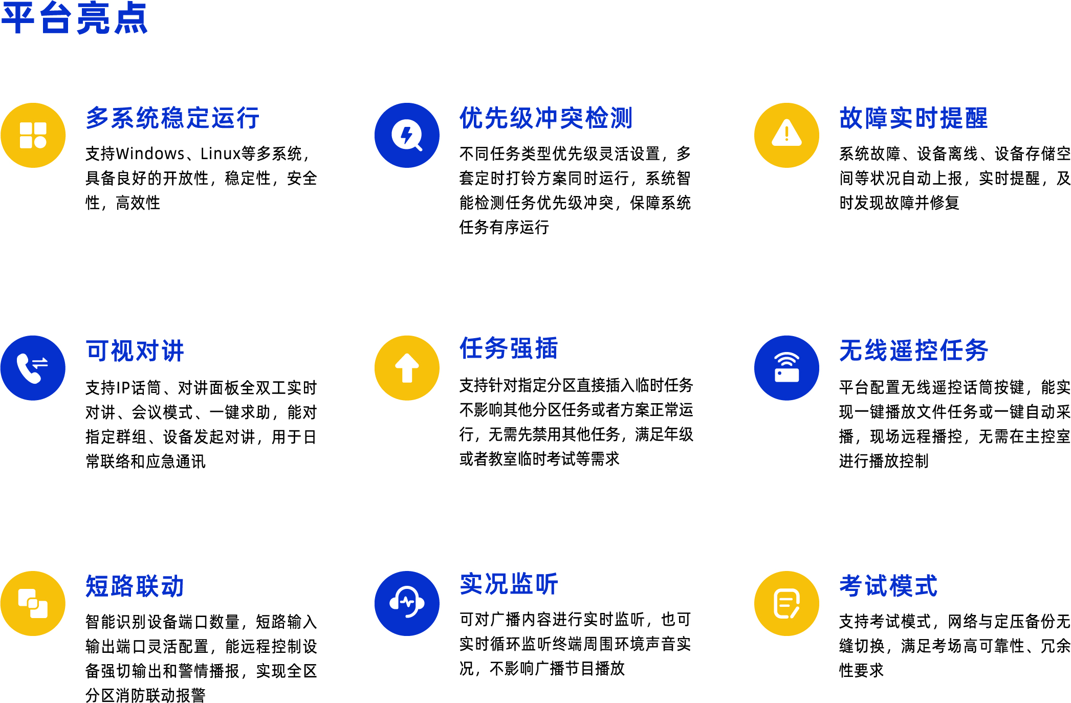 未來教育正逐步走向數(shù)字技術(shù)與教學(xué)的深度融合,校園廣播系統(tǒng)作為學(xué)校重要的基礎(chǔ)設(shè)施,必須滿足學(xué)校廣播業(yè)務(wù)場景的多樣化,建設(shè)更高質(zhì)量的教育體系,要求廣播系統(tǒng)具備高效的穩(wěn)定性,安全性,以及多樣化等特點。